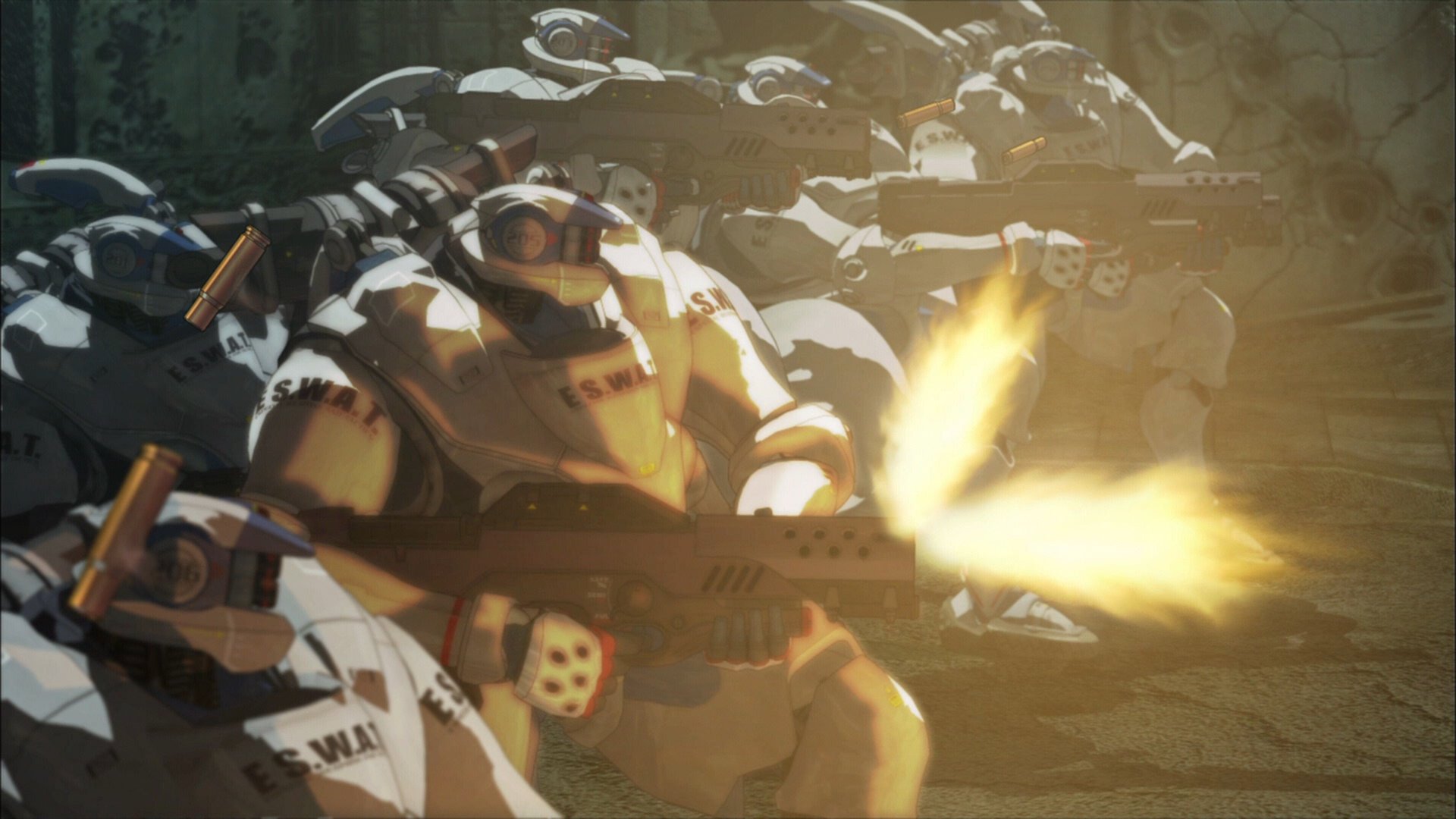 In Olympus Denuan is reunited with her former lover Briareos, who now has a cyborg body due to a fatal injury sustained in the war. It is revealed that Denuan was retrieved to join the forces of ES.W.A.T. a kind of counter terrorism police unit. At least that's the official narrative, but there are also other forces at work too.