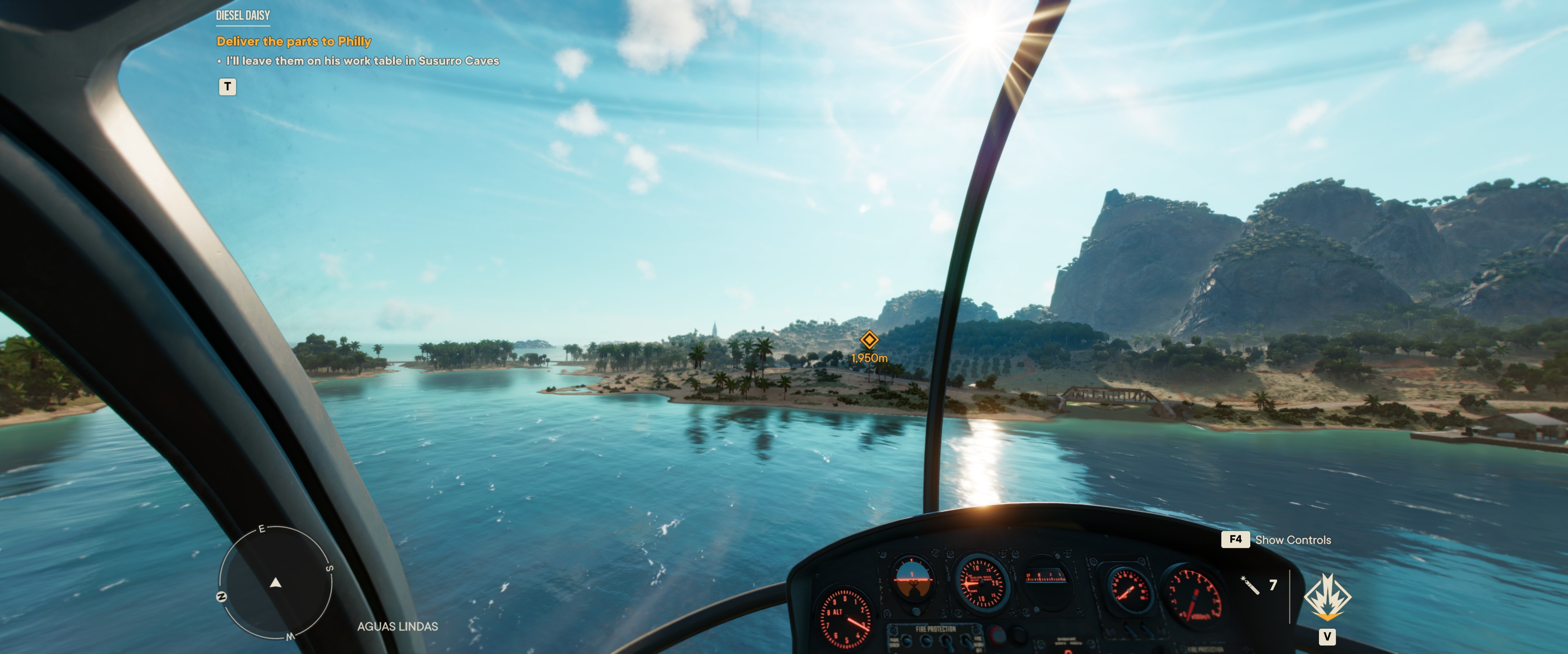 The controls of vehicles are an improvement over Far Cry 5, but still a joke by any human metric. Especially the plane. You can do a barrel roll without the pitch or yaw changing an inch. You can fly in a 45° bank and the plane will still fly straight as an arrow. It is so awkward and unnatural that it is impossible to get used to for anyone who has flown a plane in a game that gives a toss about physics. Comparatively the helicopter and land vehicles are acceptable, but still far worse than in Ghost Recon.