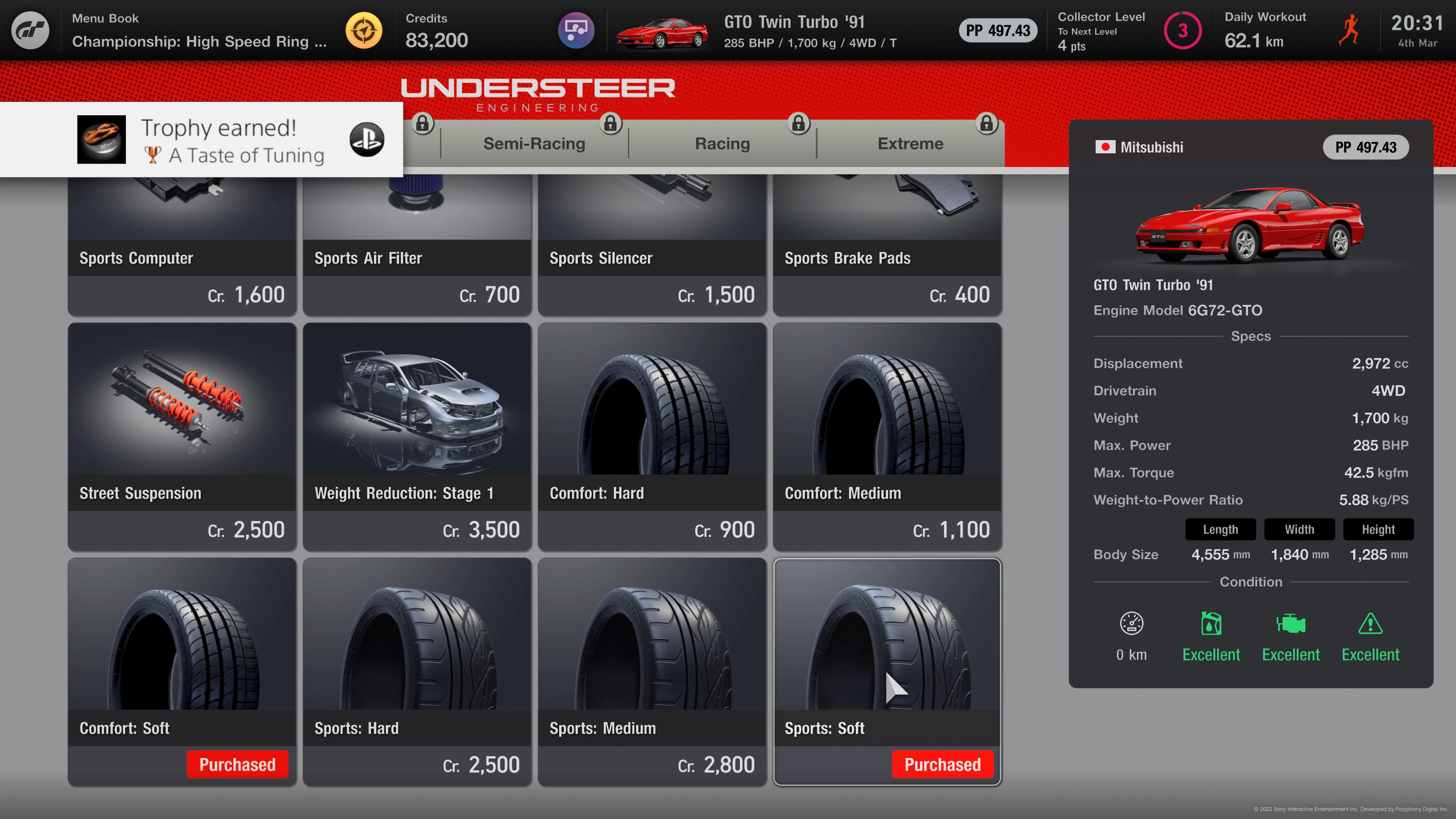 What I always loved about GT mode is that you were free to do as you wish, go where you want and race what you want. Part of the experience was finding the most ideal candidate for upgrades and you could enter relatively high reward races with tuned cars.